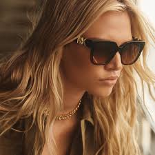 A Michael Kors combina formatos glamorosos com hastes de metal e um logo microfacetado. O formato retangular modernizado possui haste de metal com detalhes wrap around.